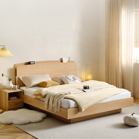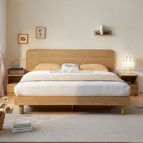 129908 Quanu Minimal tarzı son ahşap yatak tasarımları 2025 Modern masif ahşap ahşap çift yatak yatak odası seti mobilya